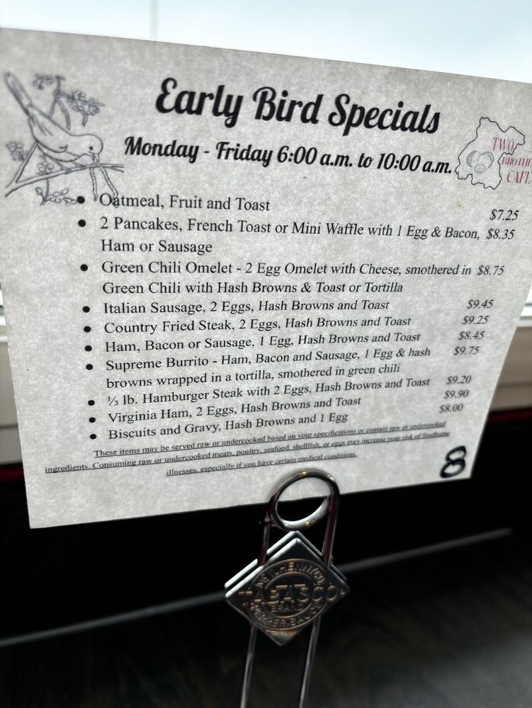Nestled in the heart of Denver, Two Brothers Cafe offers a delightful experience for breakfast and brunch enthusiasts. With a menu that’s both extensive and affordable, you'll find yourself captivated by dishes like the crowd-favorite Huevos Rancheros, topped with savory green chili, and the classic French Dip, which pairs beautifully with crispy onion rings.